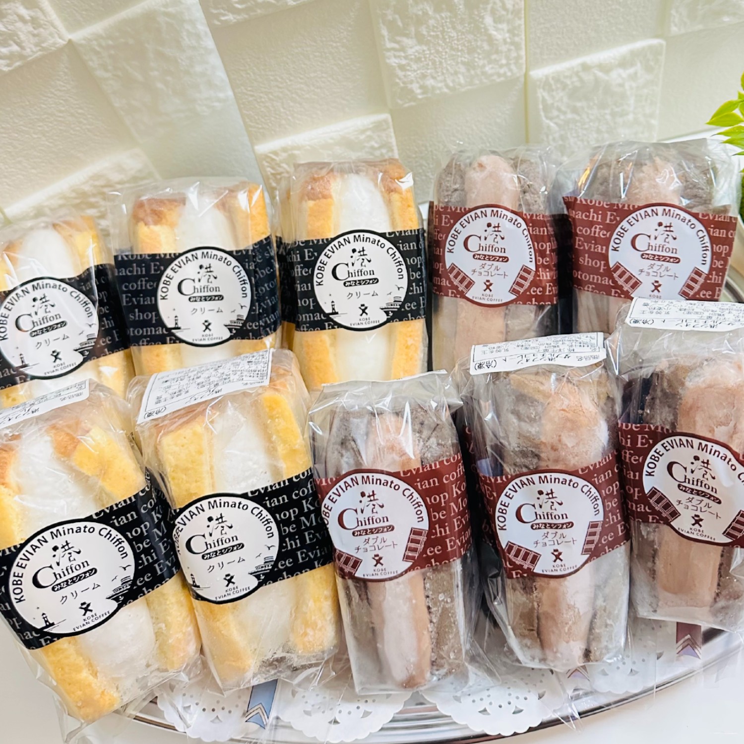 「プレーン」「チョコレート」の2種類のフレーバーを楽しめるスイーツです。シフォンケーキ好きはぜひ。